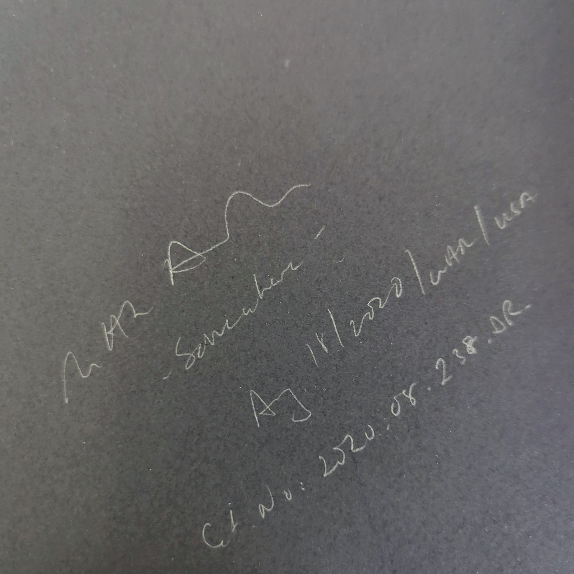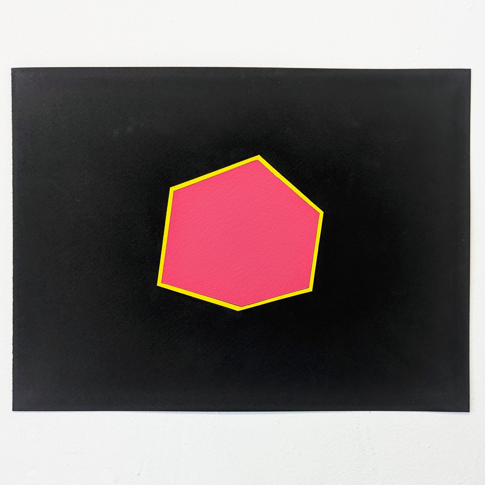 A small collaged drawing on black Stonehenge paper completed in 2020. This drawing pertains to the Torqued Paintings, Abstract Frame series.